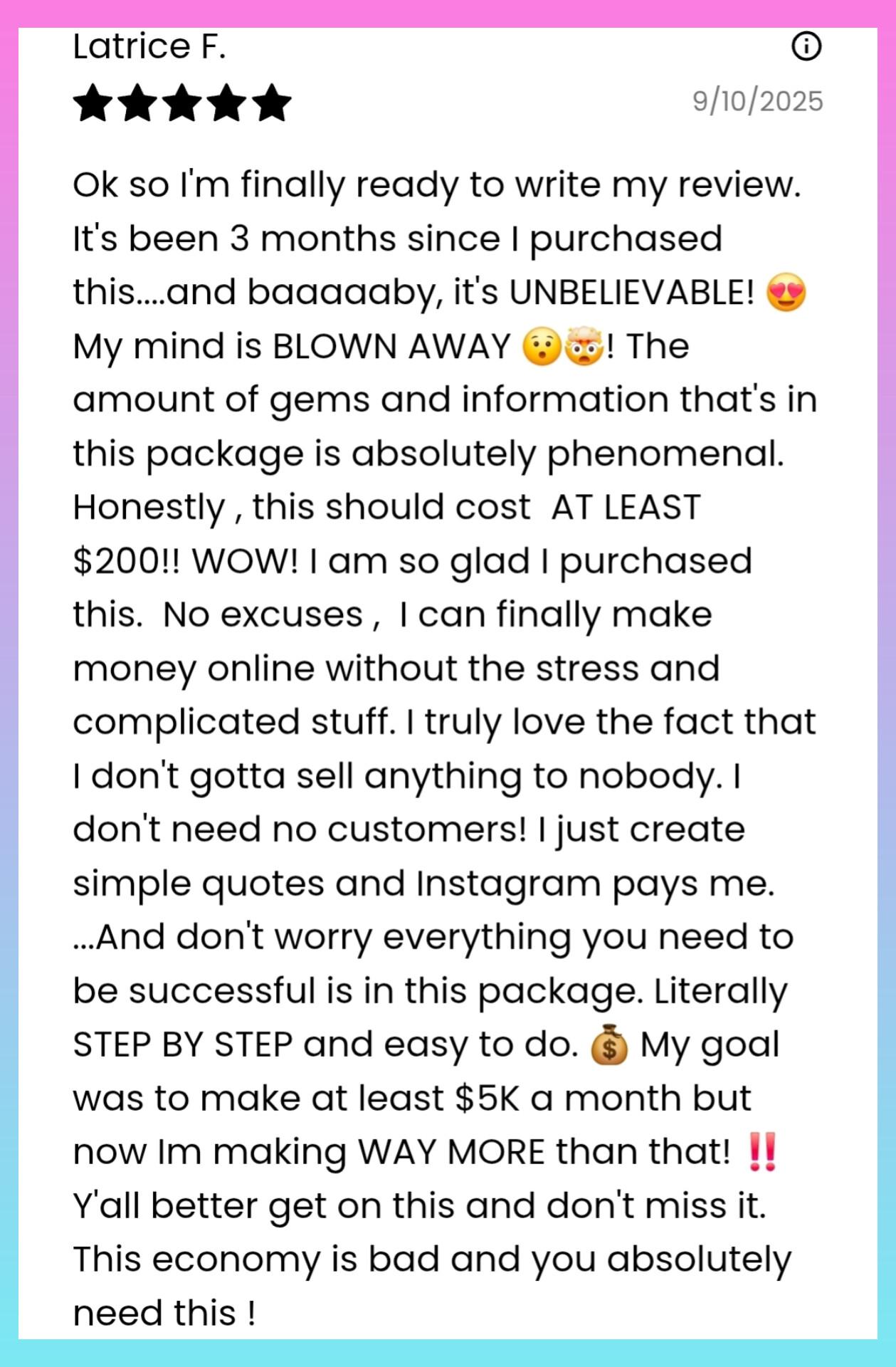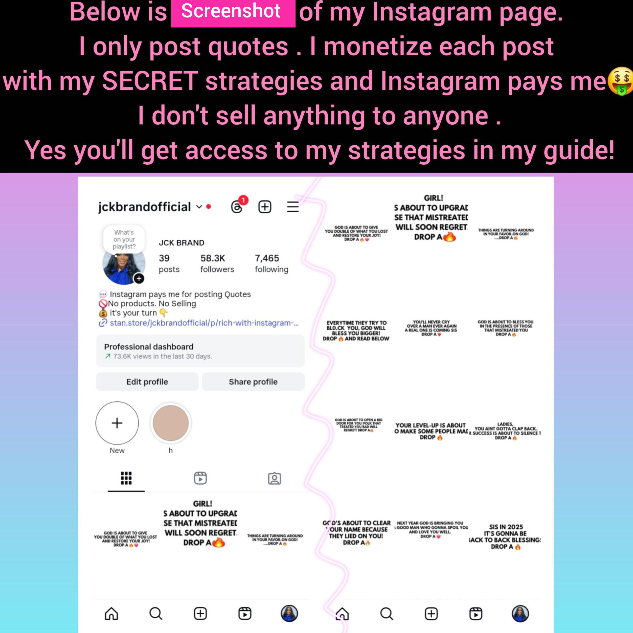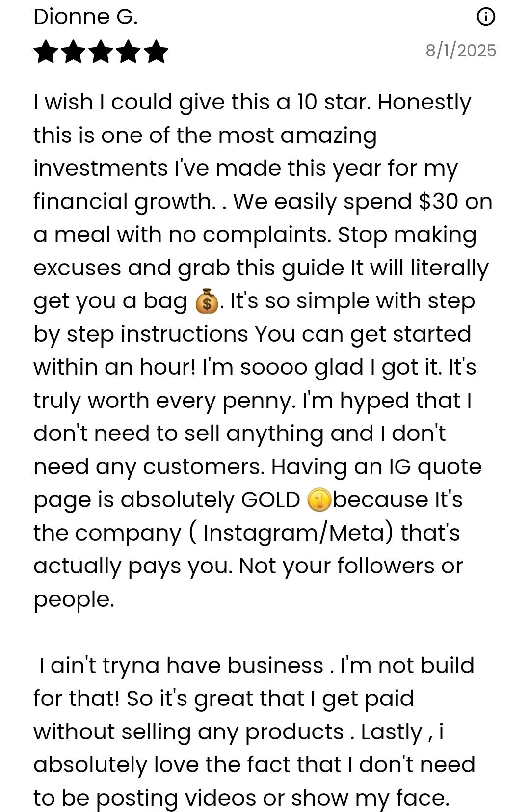 I’m giving you the exact steps to turn your Instagram page into your own low-key income stream—fast....in a matter of days. Yep, get my secret on how to monetize your IG page the right way to you can get paid even faster!